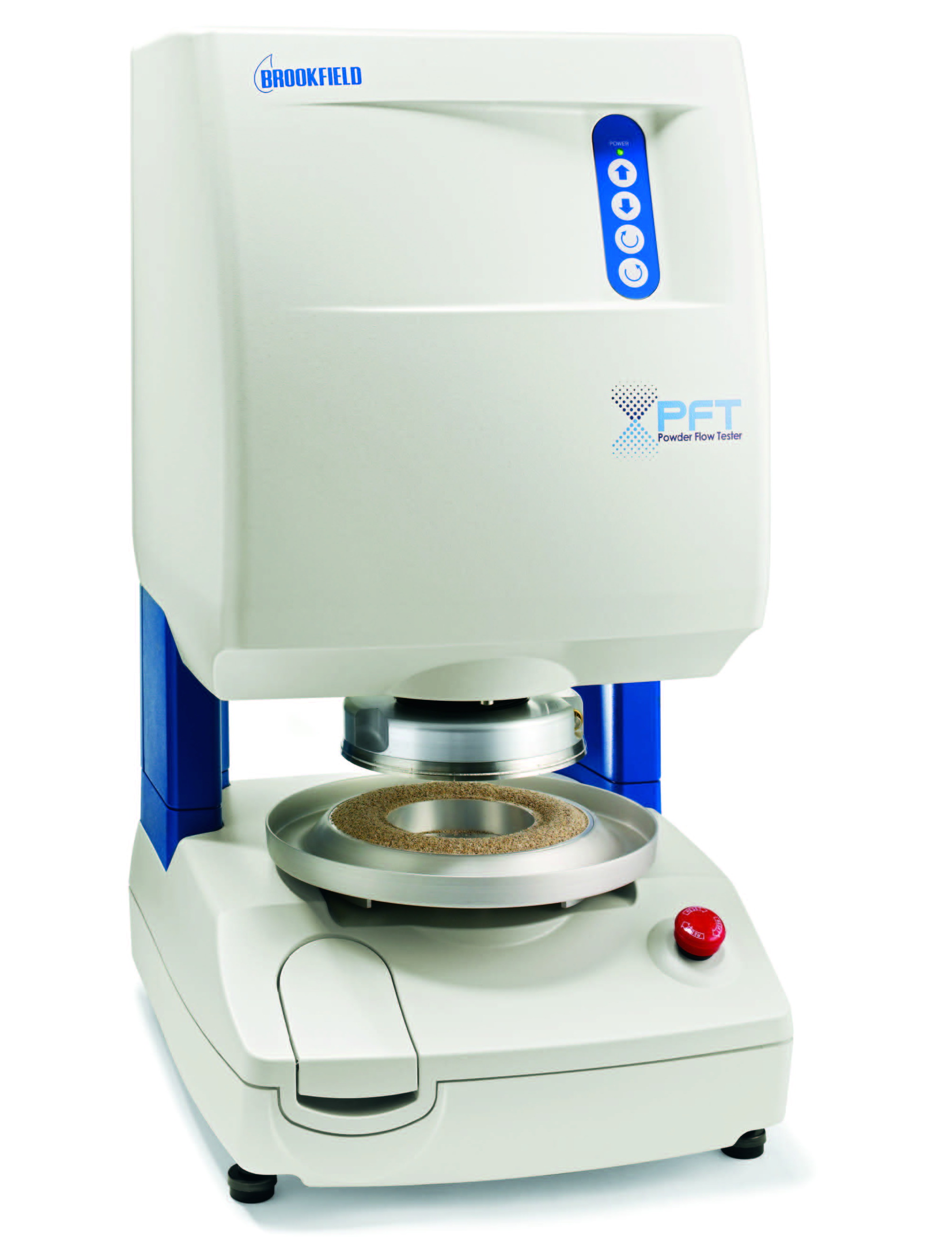 Brookfield PFT粉体流动测试仪为工业处理设备中的粉体流动行为提供了快捷而容易的分析PFT粉体流动测试仪不仅评估粉体从储藏容器中排卸,而且可作为QC检查进行来料检验可快速定量分析新配方的流动性,并调整配方组成以匹配指定产品的流动行为。